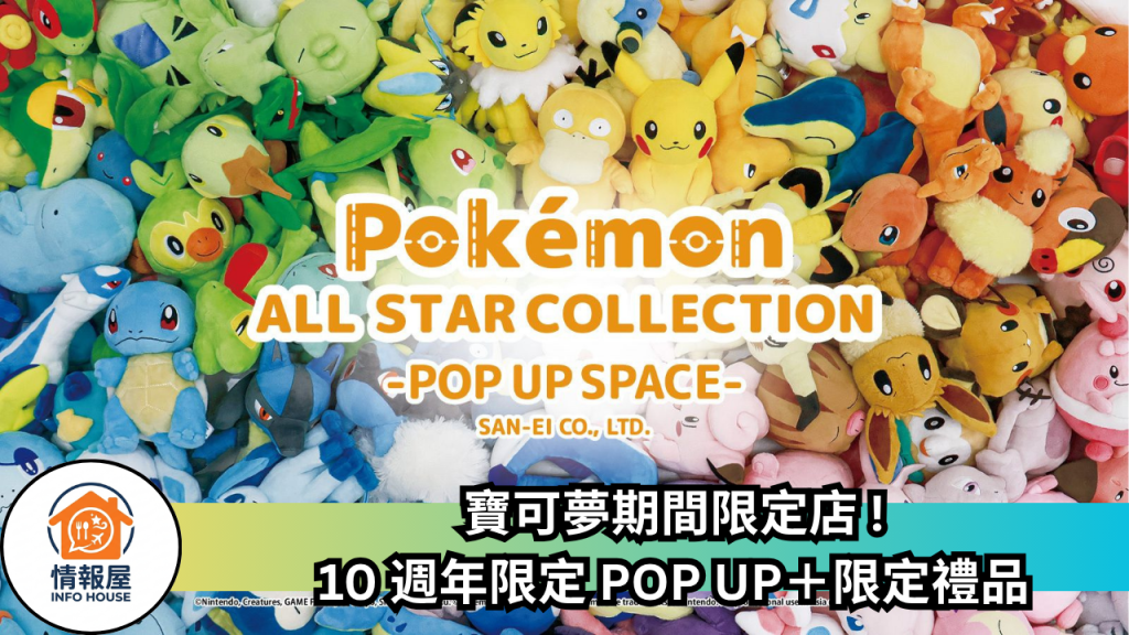 寶可夢迷又有新打卡點!「Pokémon ALL STAR COLLECTION POP UP SPACE」期間限定店將首度登陸香港,大量高質毛公仔一次過出現在大圍圍方,幫系列慶祝 10 週年同商品突破 300 款里程碑。